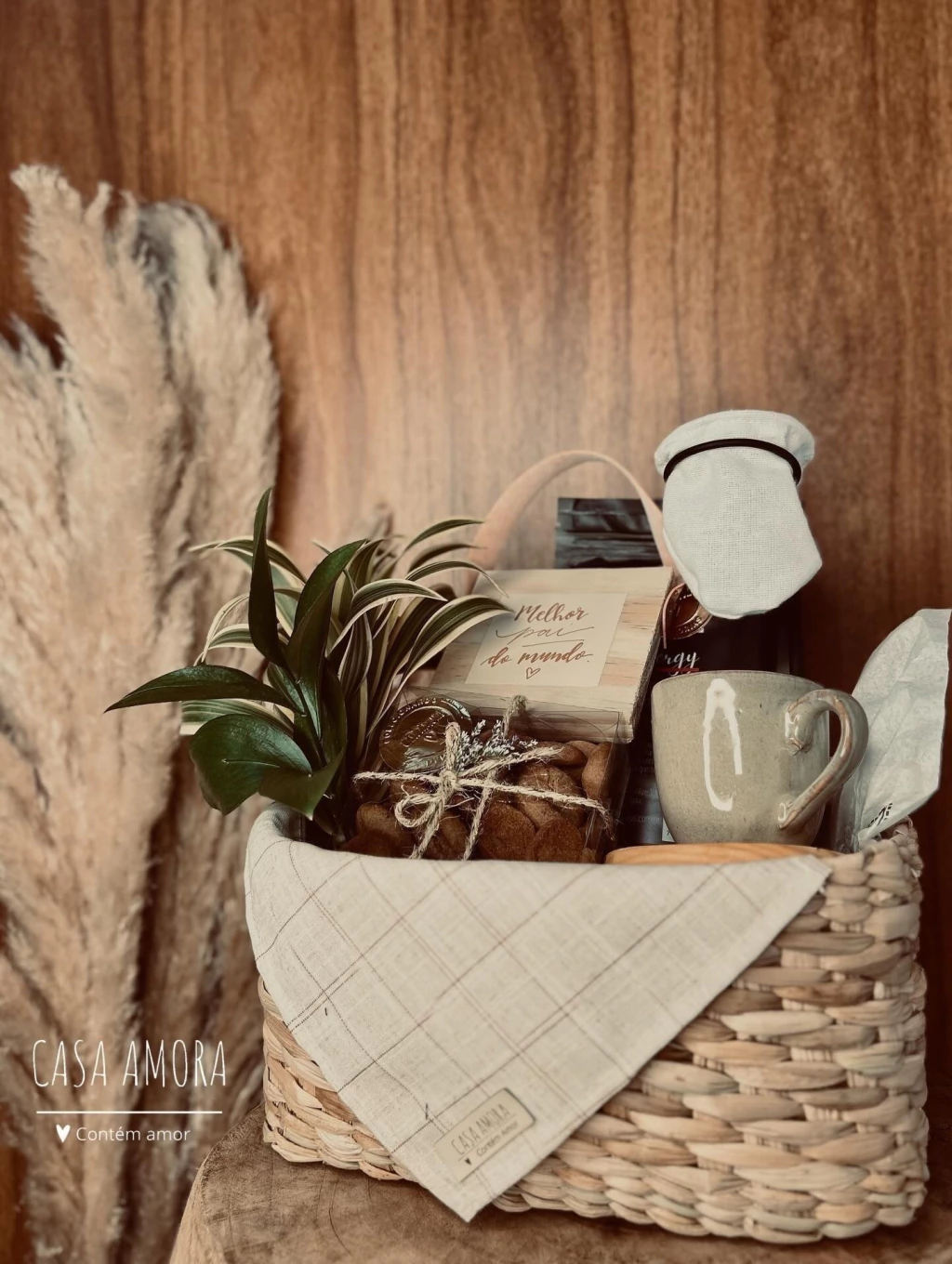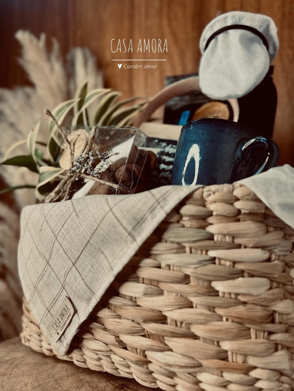 Apresentamos a Cesta de Café, um presente sofisticado e cuidadosamente selecionado para momentos especiais. A cesta de palha acompanha: